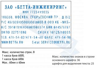 | Размер поля: 60 х 40 мм, строк 8, кол-во знаков 36/25 |