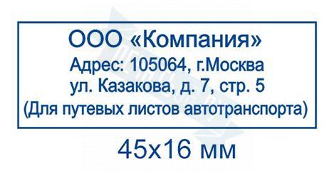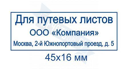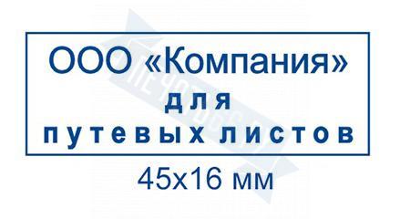 - Штамп для путевых листов на автоматической оснастке 47x18 по цене 2148 рублей и еще 3 вида штампов для путевых листов