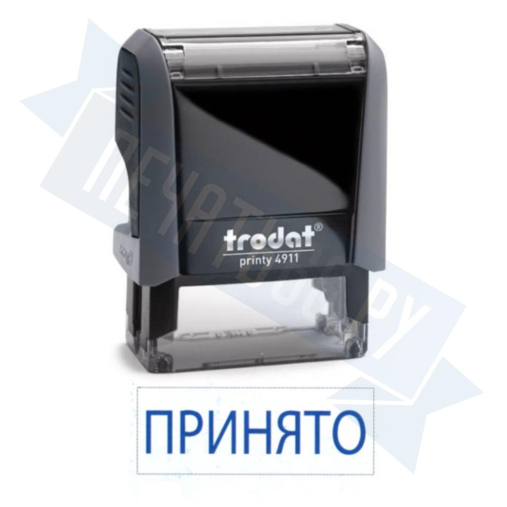 - Штамп ПРИНЯТО на автоматической оснастке Trodat 3911 размером 37 х 14мм по цене 2448 рублей и еще 84 вида штампов со стандартными словами
