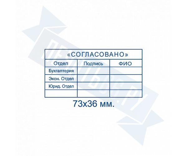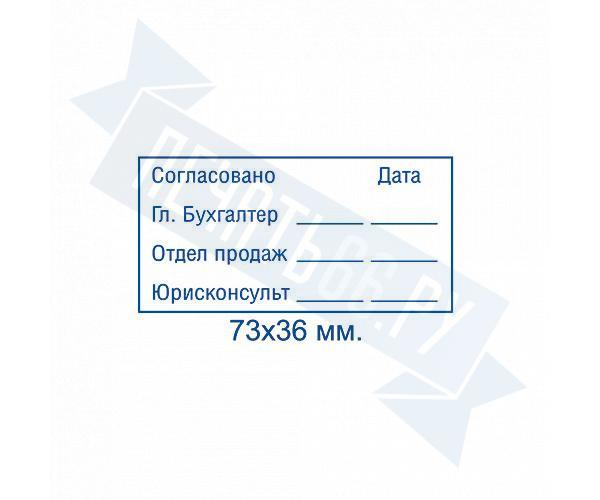 - Штамп согласования на большой автоматической оснастке 70x25 по цене 2597 рублей и еще 12 видов штампов согласования